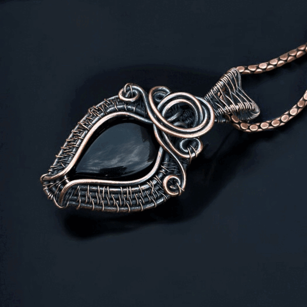 Add a touch of sophistication to your accessory collection with our stunning Black Onyx Copper Pendant. Skillfully handcrafted, this one-of-a-kind piece beautifully combines the natural allure of polished Black Onyx with the rustic charm of pure copper. Whether you’re looking to enhance your own wardrobe or searching for the perfect gift for someone special, this pendant is bound to make a memorable impression.