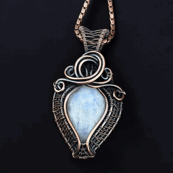 Discover the captivating beauty of our Moonstone Copper Pendant, an artisan-crafted piece that blends natural elegance with enduring charm. Featuring a smooth, glistening moonstone encased in hand-forged copper, this pendant is more than just an accessory—it’s a heartfelt expression of artistry and style. Its understated yet mesmerizing design ensures it remains a versatile choice for any outfit, whether you’re dressing up for a special occasion or adding a touch of sophistication to your everyday wear.