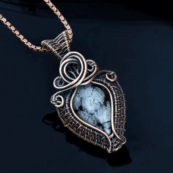 The Snowflack Stone Copper Pendant is meticulously handcrafted to ensure every detail is perfect. Made from high-quality copper, the pendant captures the raw and earthy essence of this durable and elegant material. The natural tones of the copper beautifully complement the Snowflack Stone, creating a balance between warmth and sparkle. This artisanal craftsmanship guarantees that no two pendants are exactly alike, ensuring your purchase is as unique as the wearer.