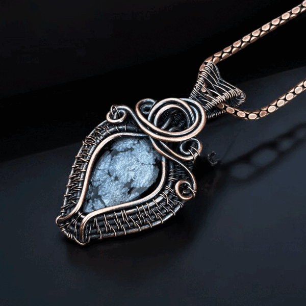 Crafted Elegance: Snowflack Stone Copper Pendant