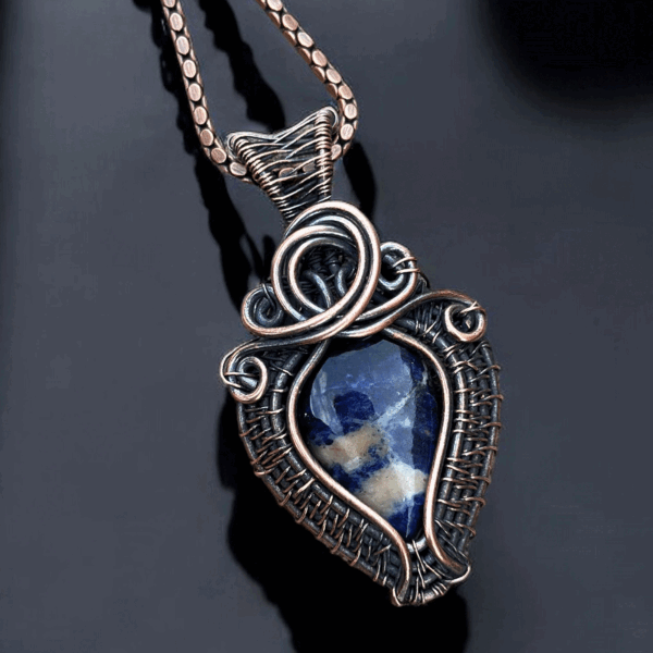 Discover the beauty of the Sodalite Stone Copper Pendant—a piece of handmade jewelry that blends sophistication and rustic charm. Crafted meticulously, this pendant features an enchanting sodalite stone encased in warm-toned copper, making it the perfect accessory to complement any outfit. Whether you’re looking for a meaningful gift or a distinctive addition to your personal collection, this pendant evokes timeless elegance and natural allure.
